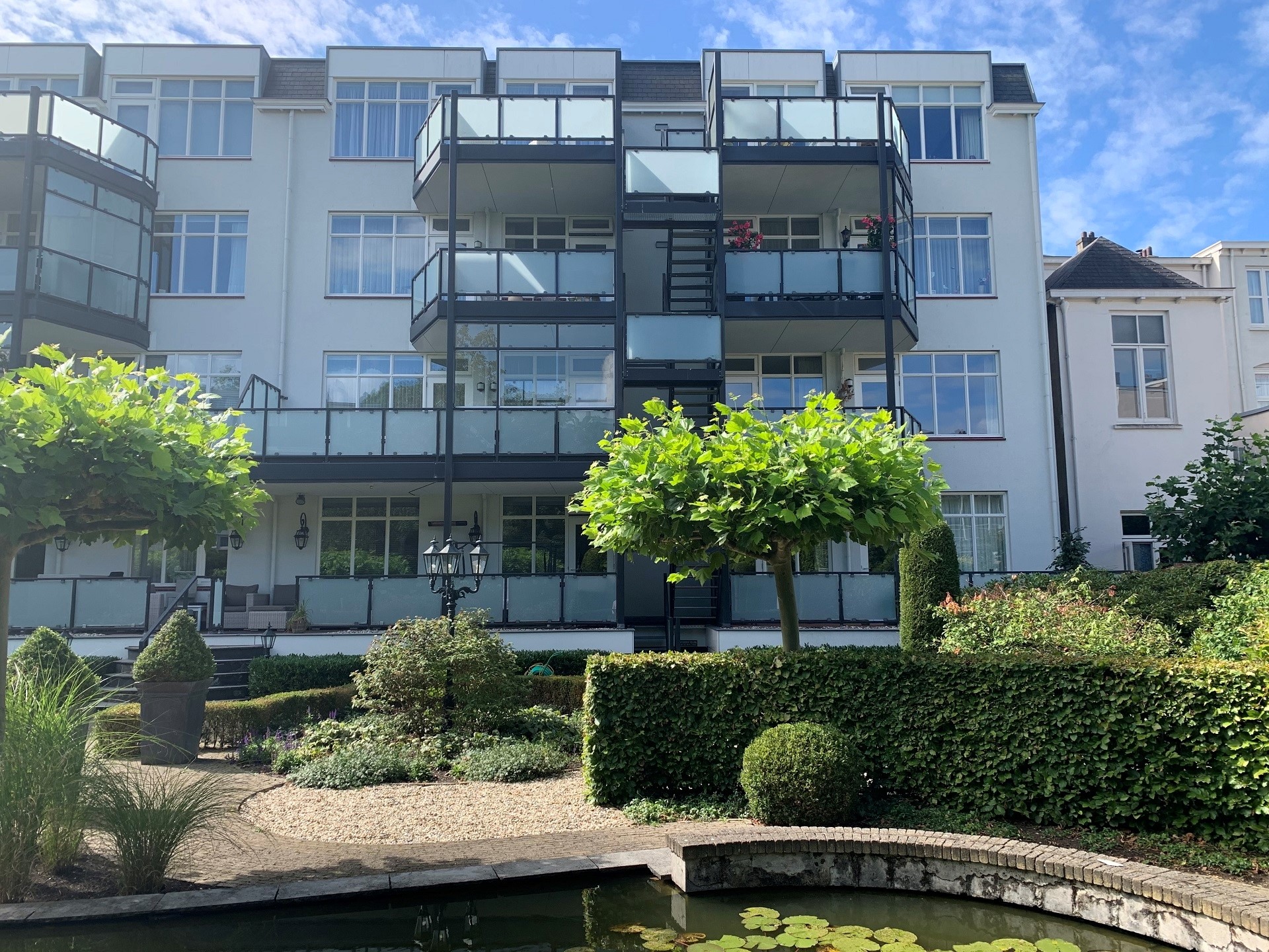Naast een balkon met uitzicht op de fraai aangelegde gezamenlijke binnentuin met verschillende zonneterrassen en een vijverpartij, beschikt het appartement onder andere over een privéparkeerplaats en een privéberging in de afsluitbare onderbouw van het complex.