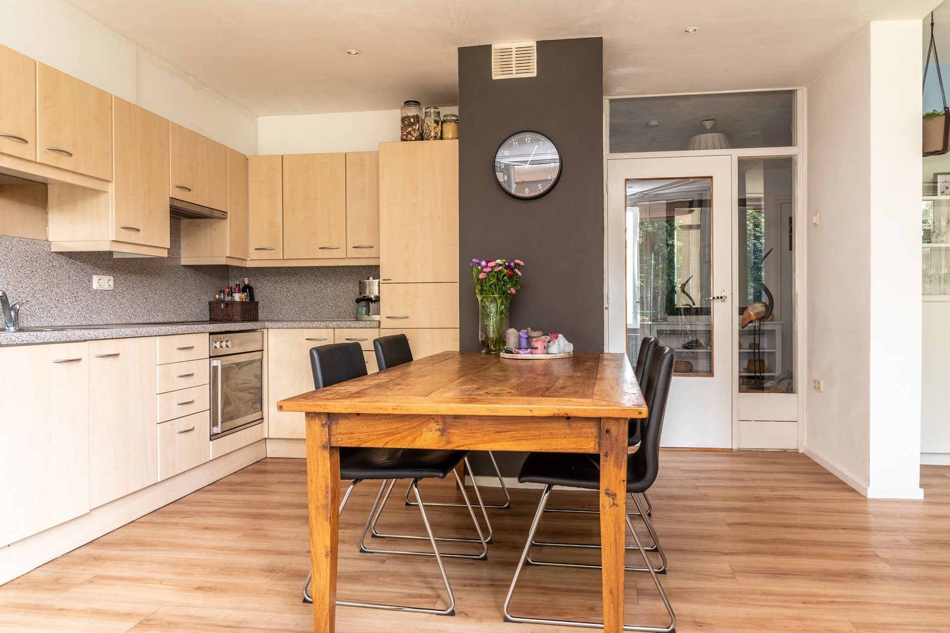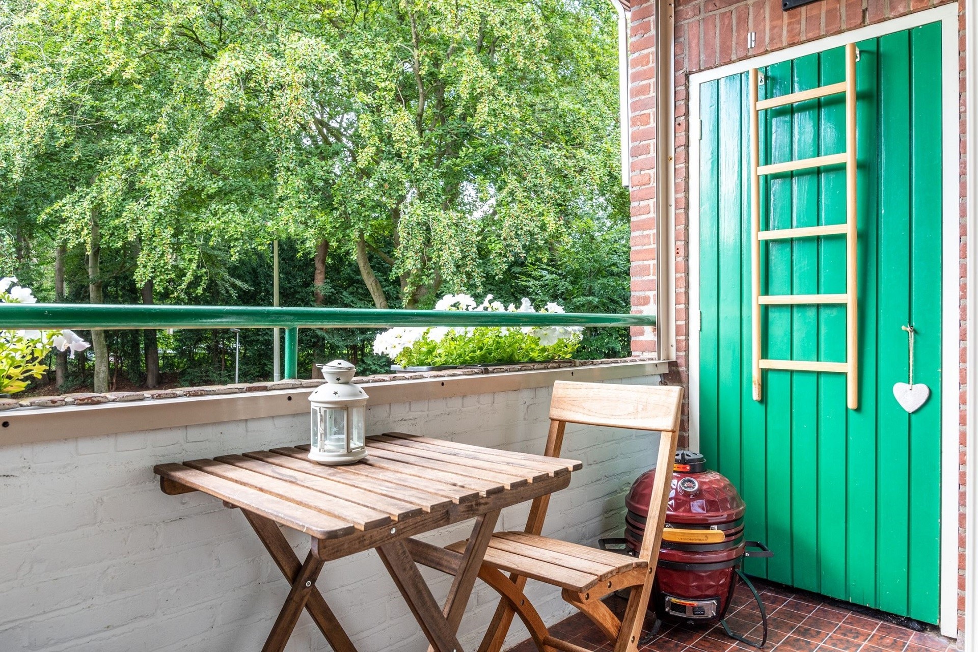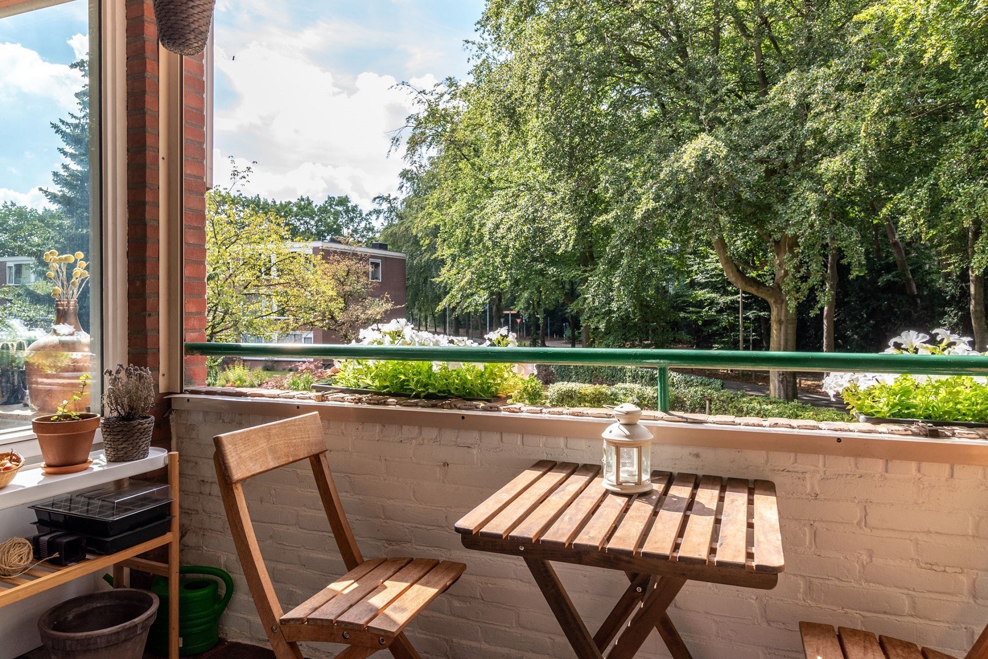 Het appartement beschikt over lekker veel leefruimte en de vele ramen zorgen voor veel lichtinval en vrij uitzicht op een groene omgeving